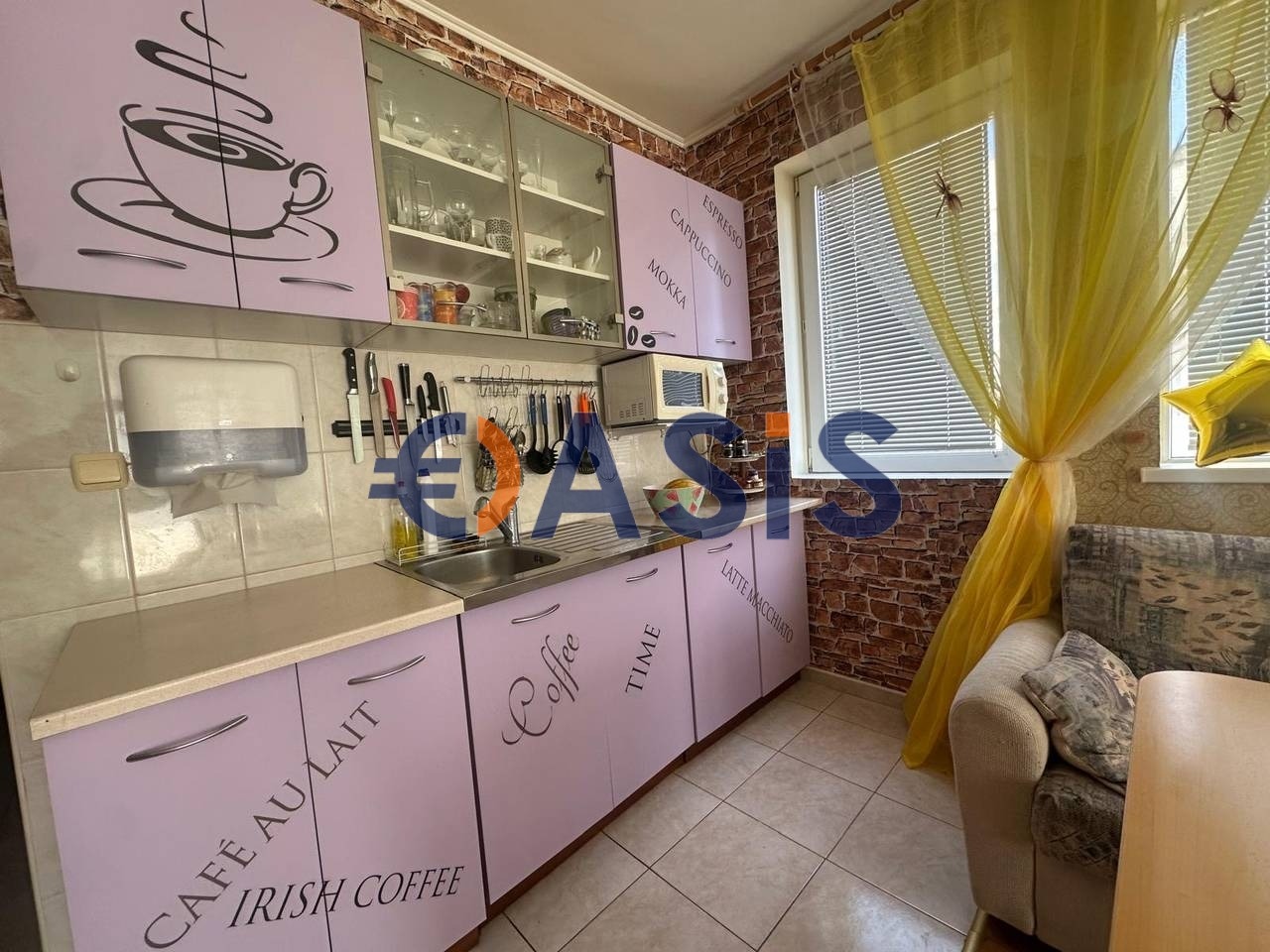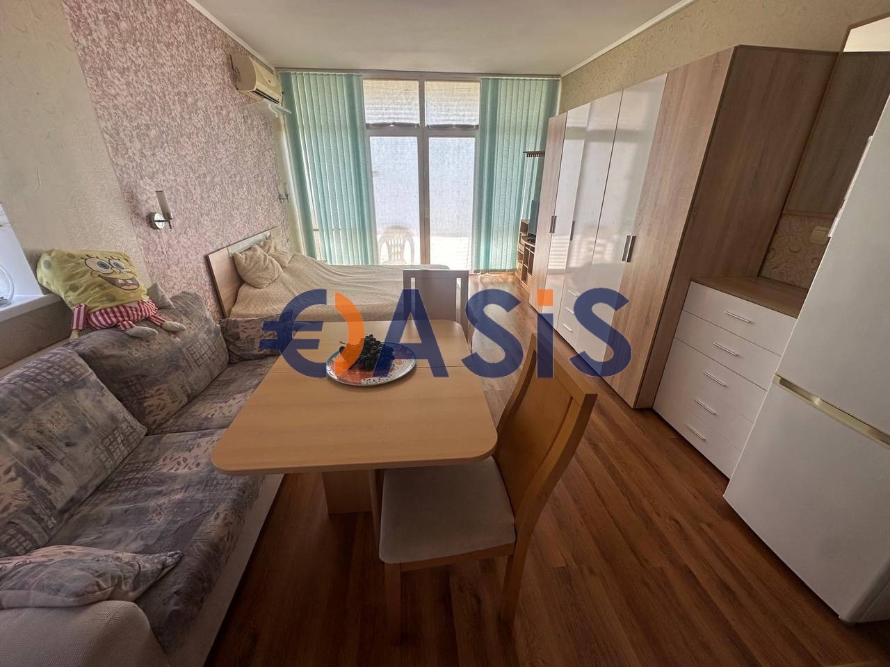 Предлагаме за продажба студио, което се състои от коридор, стая с кухненски бокс и кът за сядане, баня и тераса. Апартаментът се продава с мебели и уреди. Комплексът разполага със собствена добре обмислена инфраструктура, затворена и охраняема територия с видеонаблюдение, включваща всичко необходимо за релакс: басейн (открит), паркинг с охрана и видеонаблюдение, детски площадки. Много зелена, добре поддържана територия и рецепция.