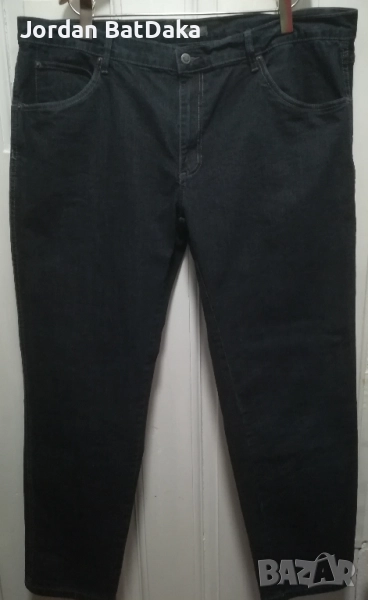 Тъмносини прави, класически дънки от хубав плат с еластант. Размери - в кръста 56(115)см и дължина 108. Дънката е буквално като нова, може и за подарък на едър мъж, препоръчвам!