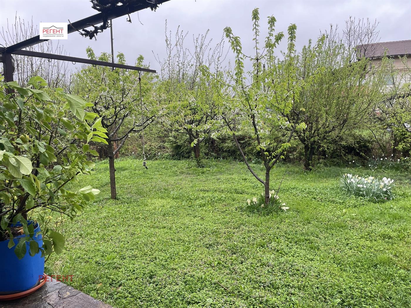 Дворното място е с площ от 625 кв.м. равно и слънчево с плодни дръвчета.