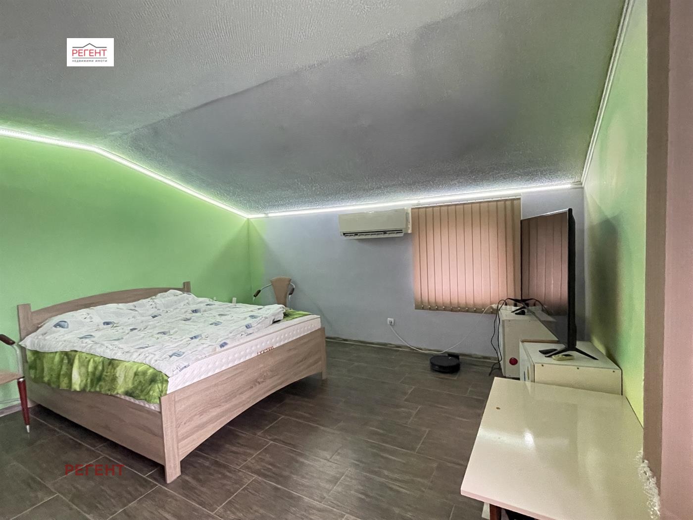 Отоплението е посредством подово,а охлаждането е чрез климатици във всички стаи.