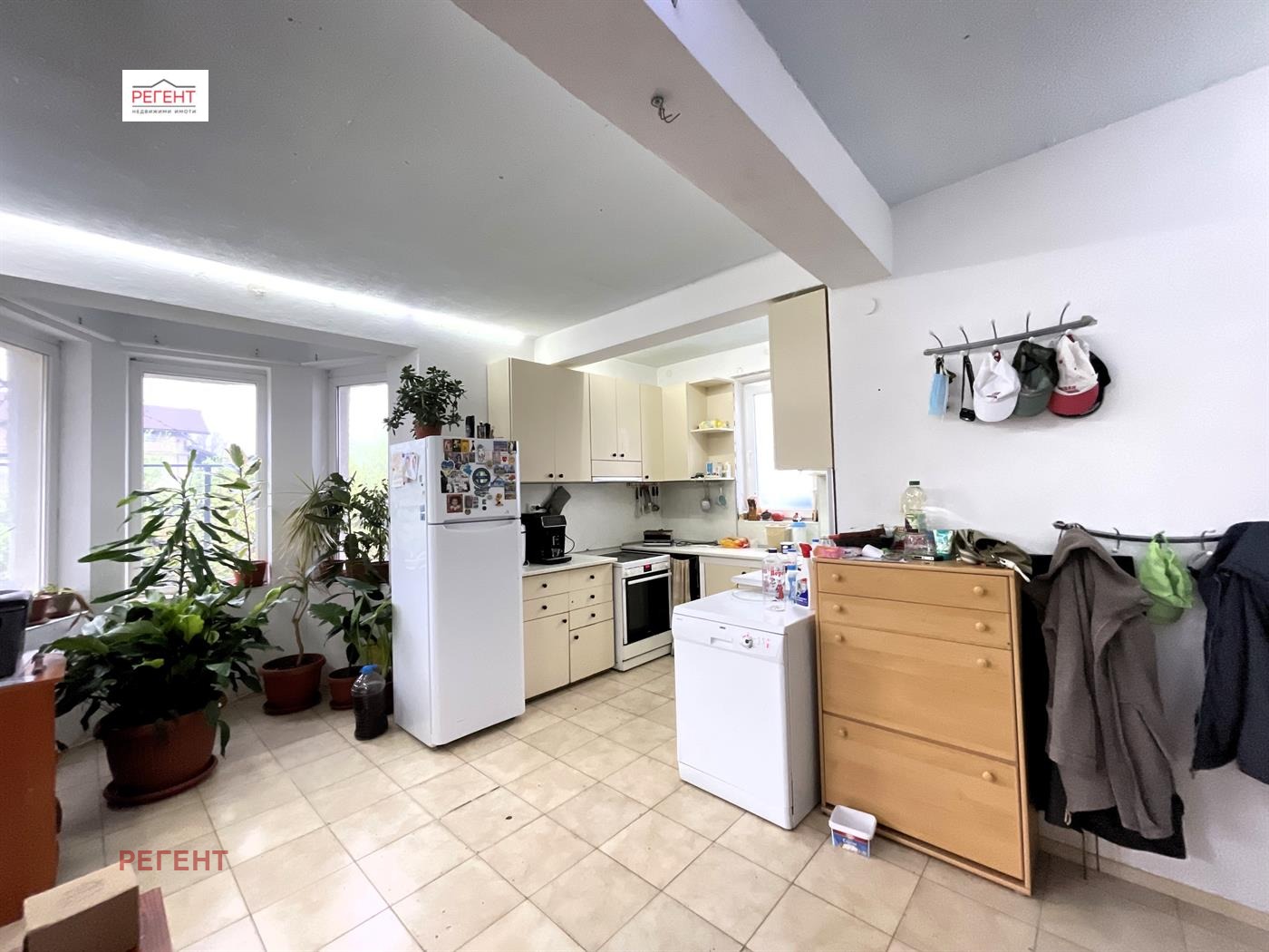 Кухня, трапезария и всекидневна са обединени в еднопространствено помещение с излаз към двора и баня,
