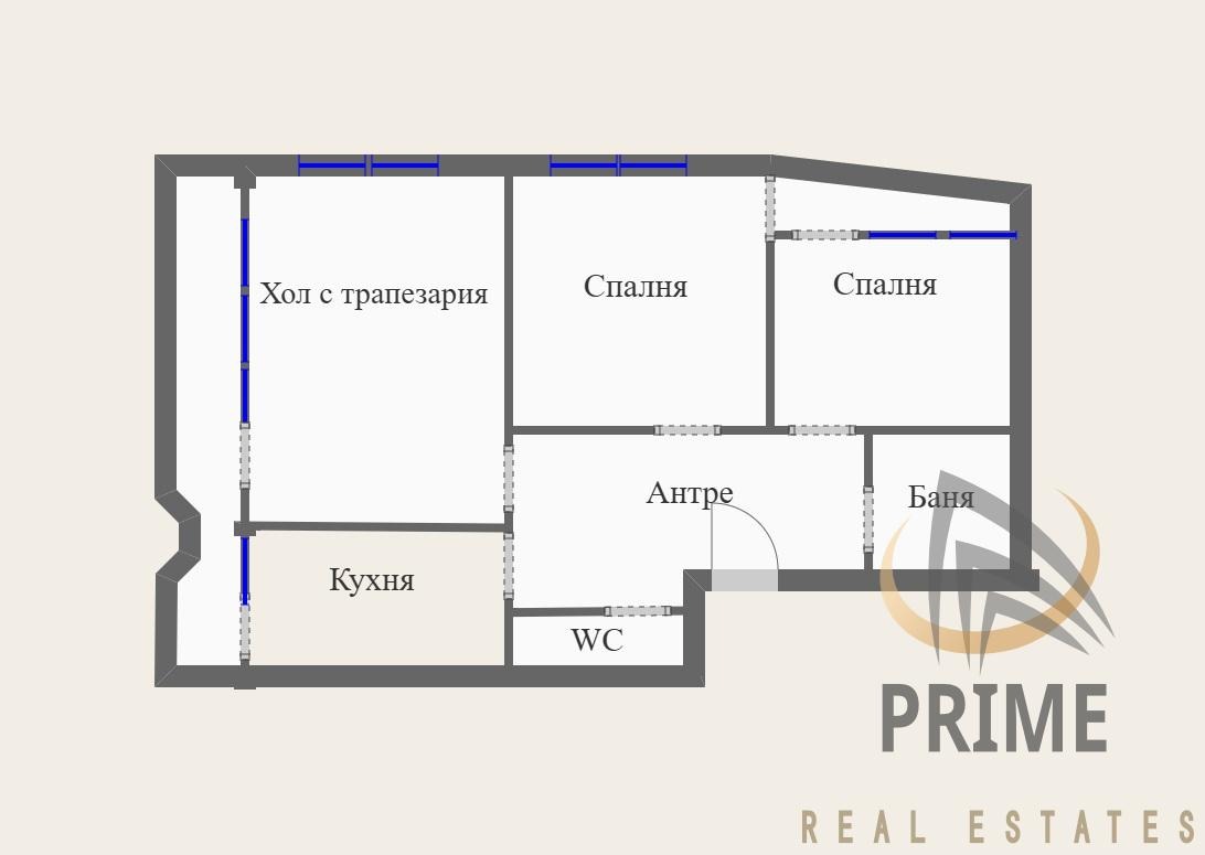 Апартаментът се продава на тапа със замазка на пода и фина шпакловка на стените и със сменени ВиК и ЕЛ инсталации.