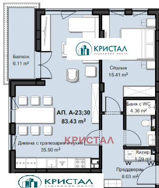 Оф. 140830 Агенция Кристал предлага за продажба апартаменти в новострояща се жилищн сграда на пещерско шосе в модерна и функционална сграда с практични разпределения на помещенията.Студия, двустайни, тристайни и четиристайни апартаменти, ритейл парк, помещения за велосипеди и детски колички във всеки вход, широки фоайета.