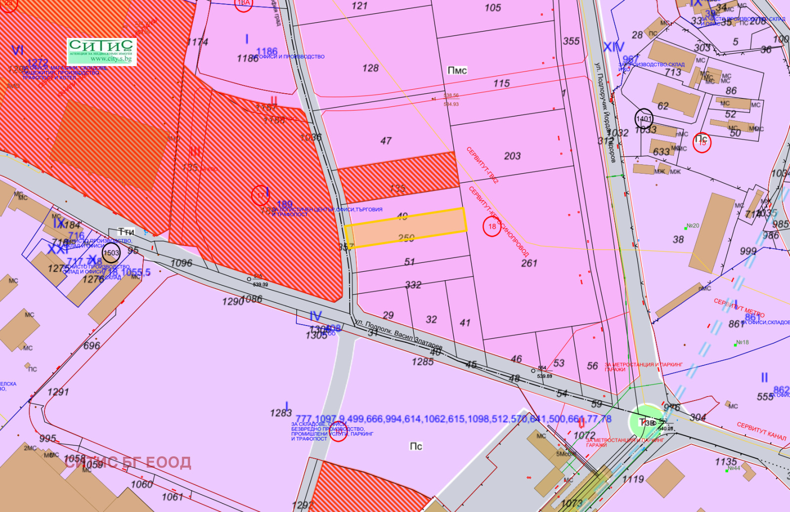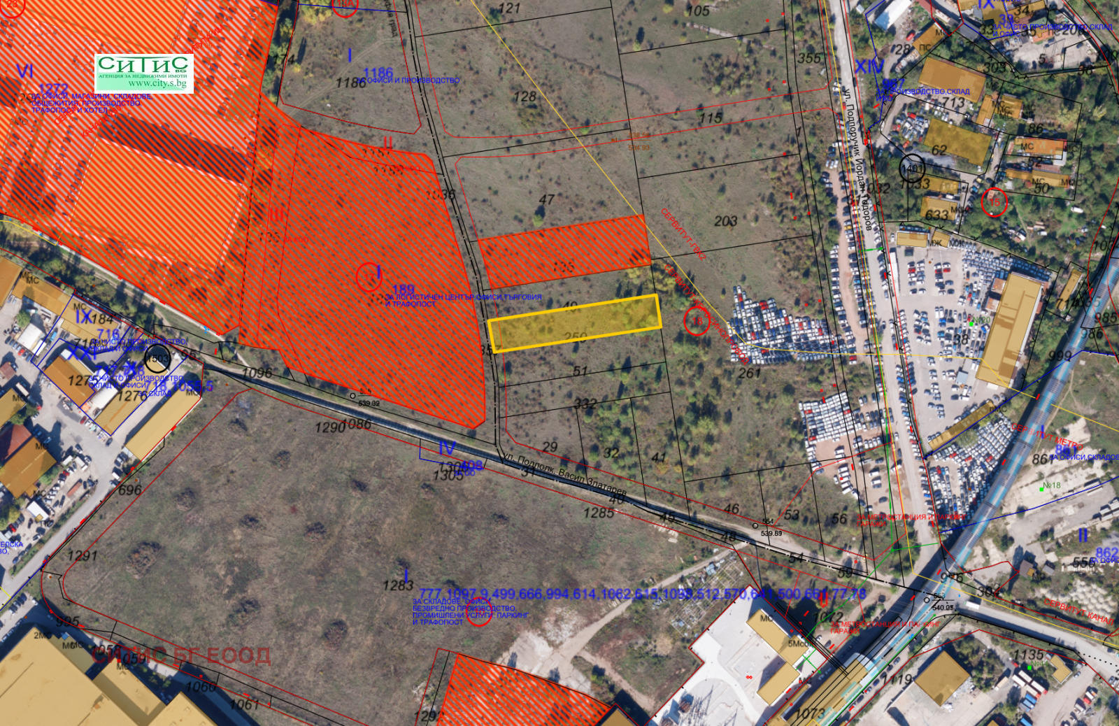 Агенция СИТИС предлага на Вашето внимание парцел в регулация в непосредствена близост до метростанция Софийска Света гора и ул. Полковник Васил Златаров. Зона за малки и средни производства и занаятчийски услуги. За застрояване с производствени, складови, административни, търговски и обслужващи сгради, работилници и др. Не се допускат производства с вредни отделяния и влияния върху околната среда. Допуска се изграждане на жилищни сгради, както и общежития за персонала в предприятията, магазини и заведения за обществено хранене, здравни заведения, професионално-технически училища и професионални бази. Мин. 20 % от УПИ е с висока дървесна растителност. Лице на поземления имот 19м. плътност на застрояване 50%, Кинт 1,5 в съседство офис сгради, логистични центрове и складове.