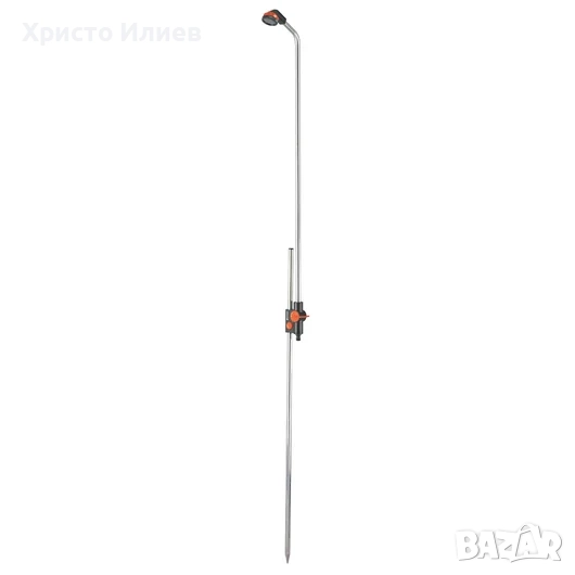 Шипът гарантира стабилно закрепване върху трева или гладки повърхности. Градинският душ се фиксира лесно към моравата или към държача за чадър на терасата.