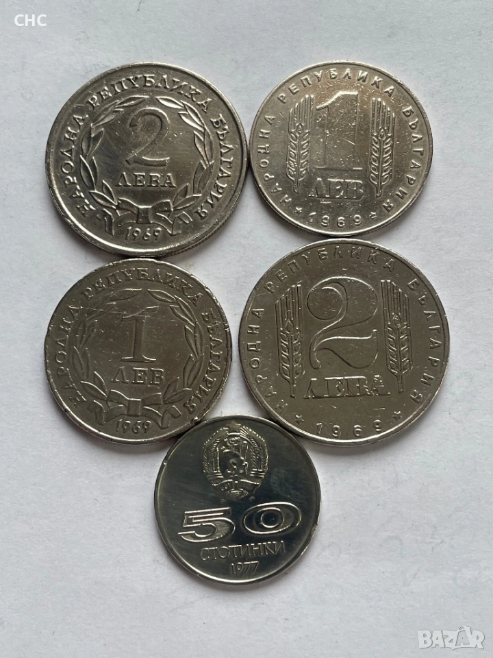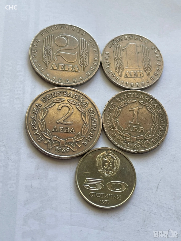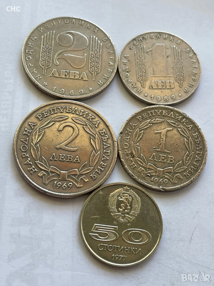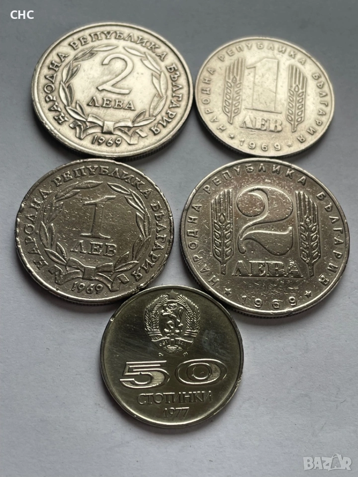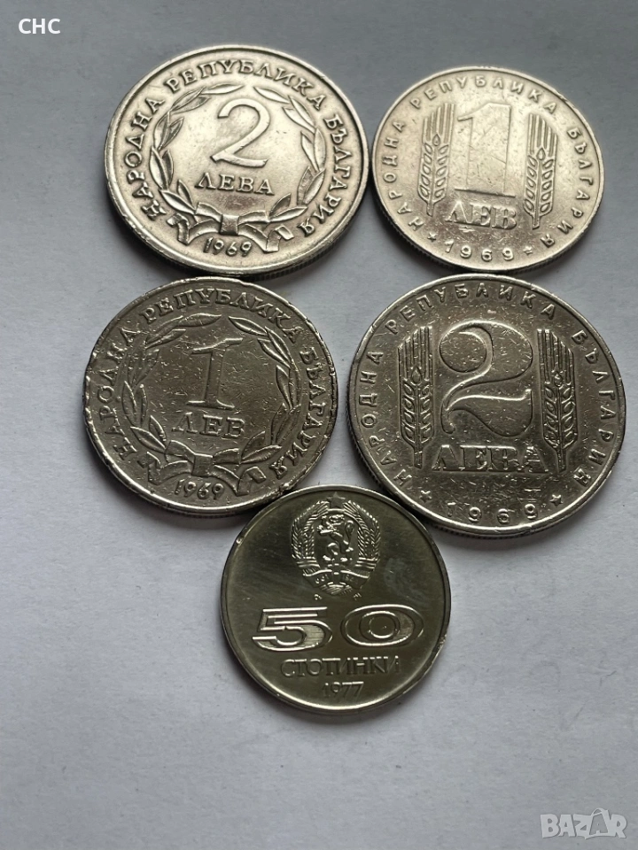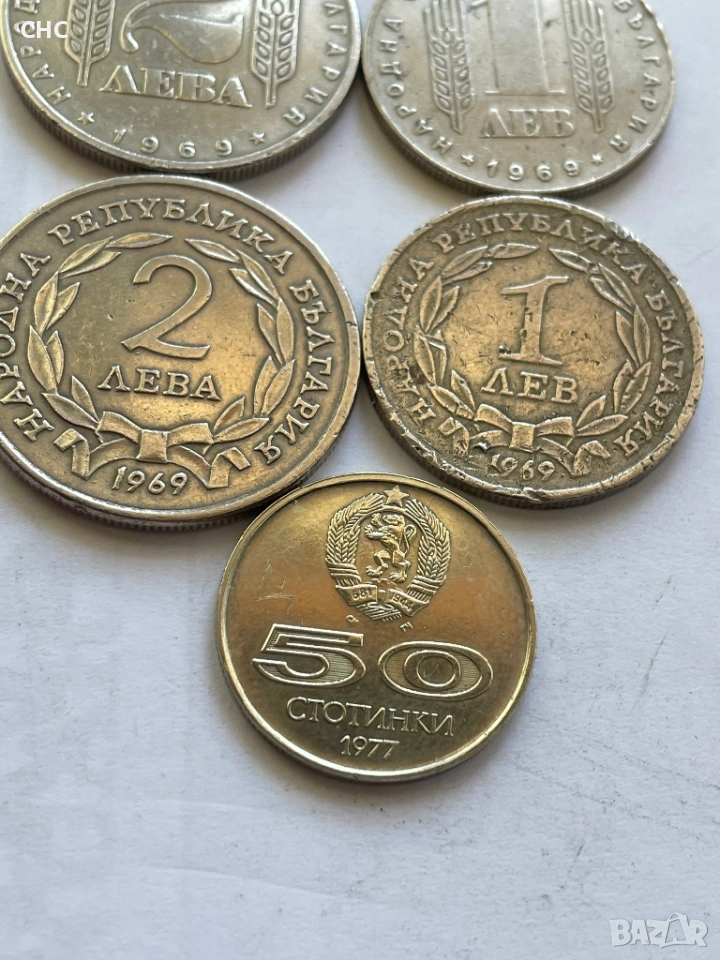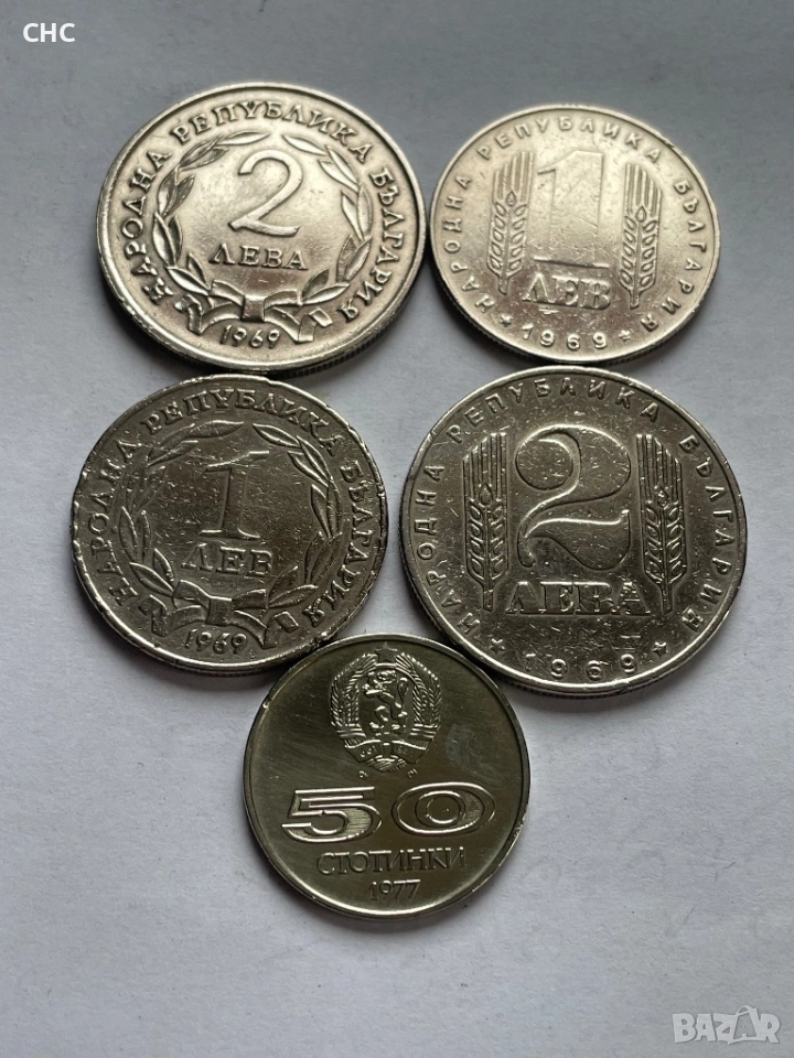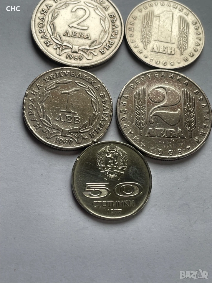 Монети 1 лев, 2 лева 1969 година и 50 стотинки 1977 г. → Обява 51664539