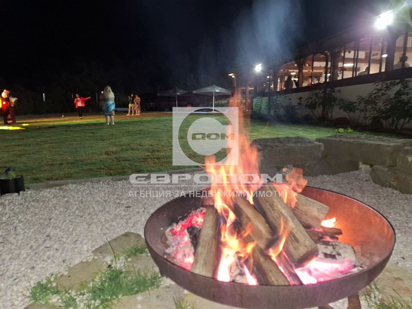 Общо помещение с площ 135 кв.м. ( оборудвано с всички електрически уреди ) и състоящо се от: столова с камина, кухненски кът, камина с водна риза, кухненски остров, сервизно помещение и санитарен възел.