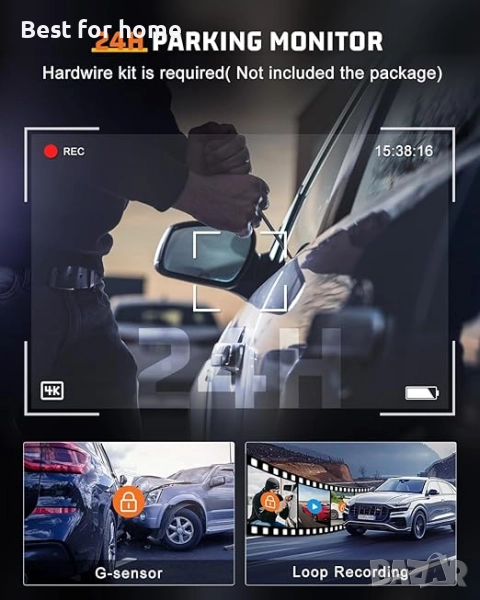 【4k автомобилна камера с 24-часово наблюдение на паркирането】 Дизайнът на автомобилната охранителна камера е такъв, че когато стартирате двигателя на автомобила, тя ще започне да записва автоматично. Когато изключите двигателя, записът ще спре. Видеорегистраторите поддържат 24-часово наблюдение на паркирането. Когато паркирате колата, моля, използвайте комплект за свързване, за да свържете видеорегистратора към автомобила, за да използвате функцията за 24-часов режим на паркиране.