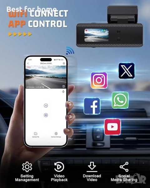 【WiFi видеорегистратор с вграден WiFi и приложение за управление】 4k видеорегистраторът за автомобили използва приложението за преглед и управление на безжични записи от видеорегистратора мигновено на вашия iOS и Android смартфон. Лесно е да преглеждате и изтегляте 4K видео, както и да променяте настройките на камерата. Избягвайте да изваждате картата твърде често, за да намалите повредата ѝ. Обхватът на WiFi връзката за видеорегистратора е 2,7-5,4 метра и ще се прекъсне автоматично, ако е извън обхвата.