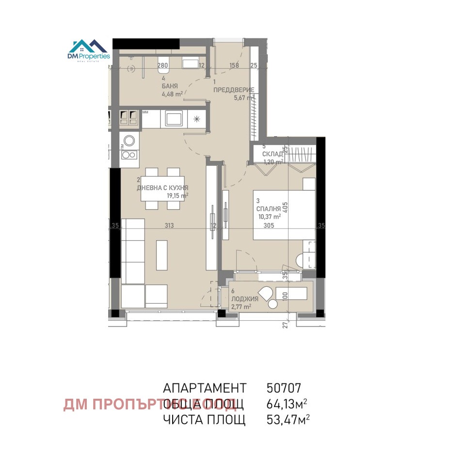 ДМ ПРОПЪРТИС ЕООД предлага двустаен апартамент в престижния затворен комплекс Central Park на ул. Скопие 3, София.