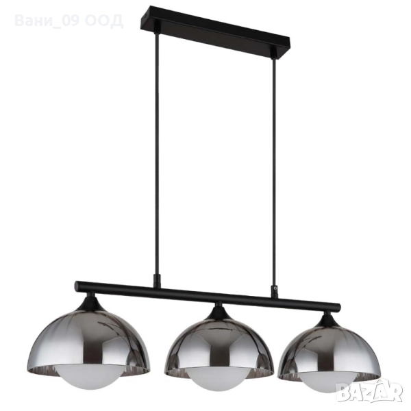 Полилеят е елегантен и съвременен елемент, който ще придаде стилен вид на дома ви. С кръглата си форма и абажури от висококачествено опушено стъкло, той създава приветлива и топла светлинна атмосфера. Черното матово метално тяло подчертава модерния дизайн и хармонично се съчетава с различни стилове на обзавеждане. Идеален за използване над трапезни маси, в кухни или като акцент в дневната.