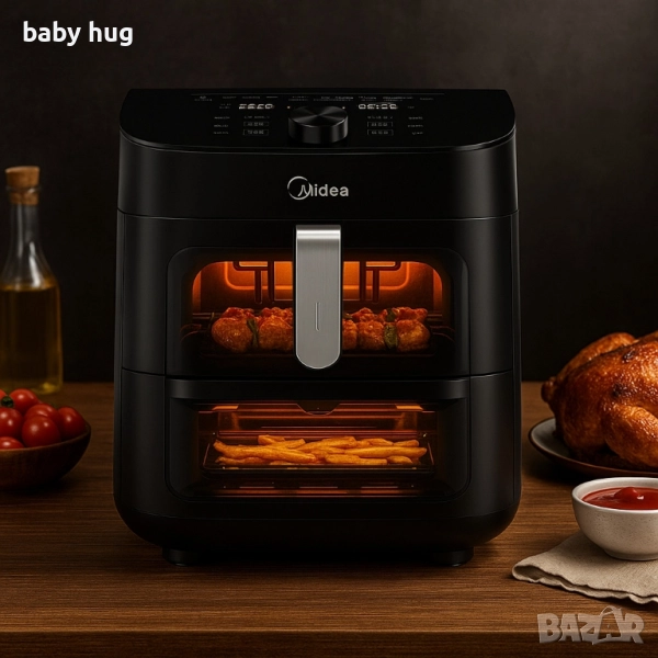 Капацитет: 6.4 L (фритюрник) + 4.4 L (фурна) ≈ 11 L общо;
