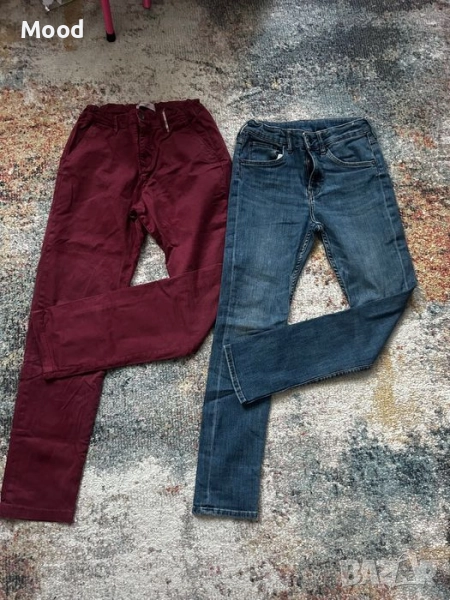 8. Лот от дънки и винено червен чино панталон 152-158, слагани по веднъж - 15 лв