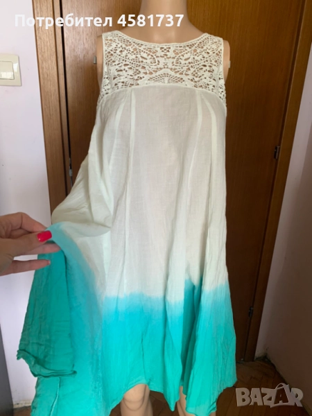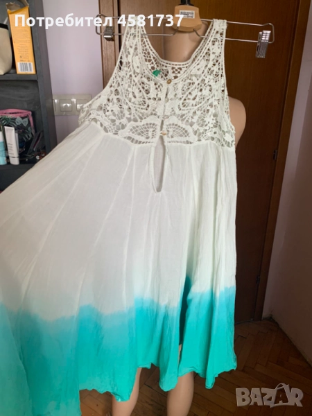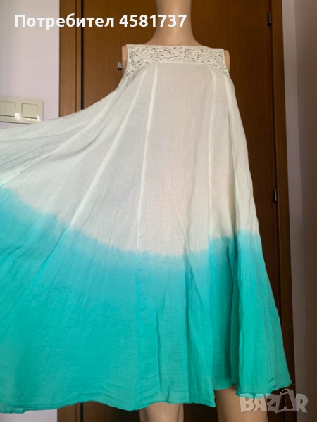 Рокля с ефект омбре на популярния бранд Benеtton. Лежерна, комфортна, свободна кройка, носеща усещане за лято, море. свободно време и удоволствия,