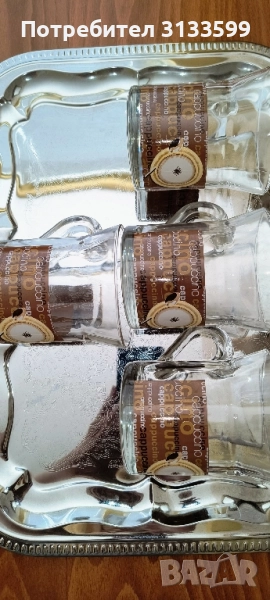 - Четири големи стъклени чаши за кафе/чай.