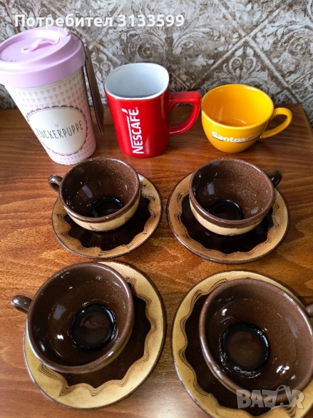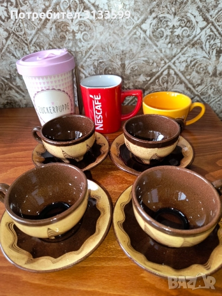 - Четири битови керамични чаши за кафе + чинийки. ЦЕНА: 4 лв. за всичко