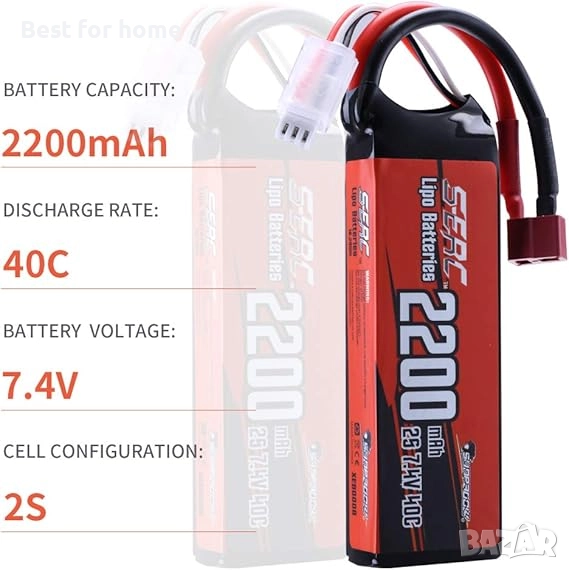 [Приложение] SUNPADOW 2200mAh 2S 7.4V RC liPo батерия, подходяща за RC модели на превозни средства в мащаб 1/10 и 1/8, като например: Bandit, Rustler версия, Losi, Team Associated и др. (Преди покупка, моля, проверете дали размерът, напрежението и конекторът са подходящи за вашите RC модели).
