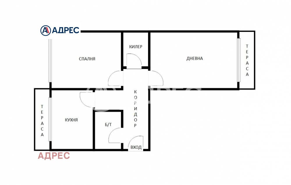 . Състои се от две отделни стаи, кухненски бокс, санитарно помещение, килер и две тераси. Жилището е за ремонт.