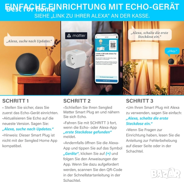СЕРТИФИЦИРАН ОТ MATTER, ПОВИШЕНА СЪВМЕСТИМОСТ: Лесно управление чрез гласови команди или мобилно приложение с Amazon Alexa, Google Assistant, Apple HomeKit и Samsung SmartThings. Поддържа само 2.4GHz WiFi. Изисква се платформа, съвместима с Matter. Не е съвместимо с приложението Sengled Home.