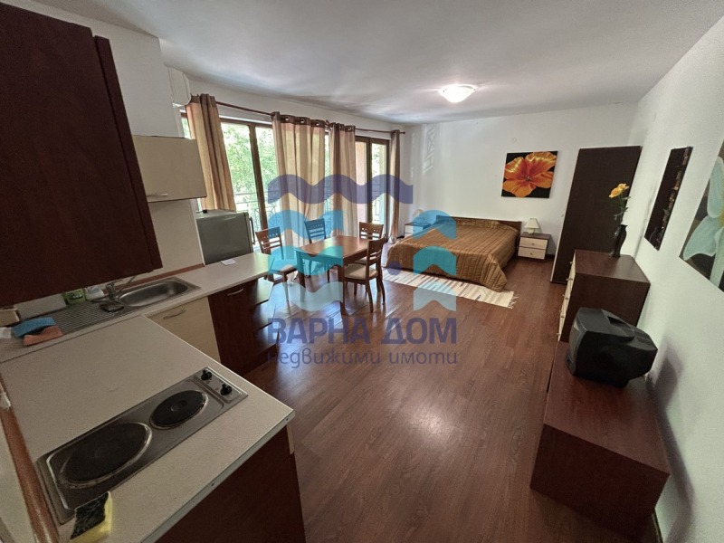 ВАРНА ДОМ отдава под наем едностаен апартамент с обща площ от 55 кв.м, разположен в престижен затворен комплекс с басейн в к.к. Златни пясъци. Имотът се предлага за постоянен дългосрочен наем и е подходящ както за сам човек, така и за двойка.
