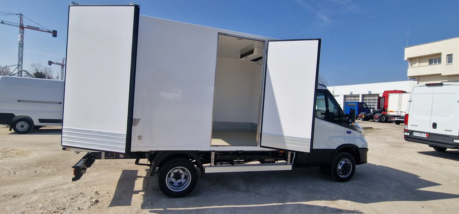 Нов хладилен камион с кат Б. Фургон 3850/2100/2100 за 0С Хладилен агрегат Thrmo king V300 20 +380V Спойлер, странична врата Налични 5 бр. след 06. 2024г
