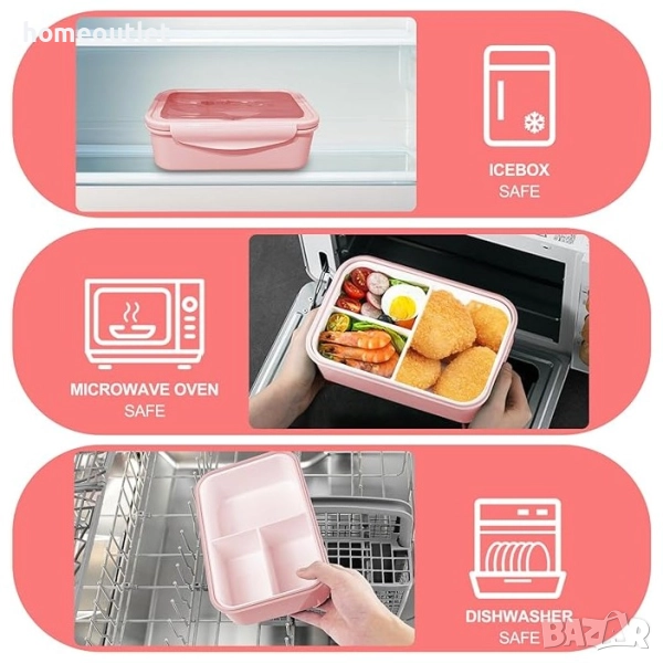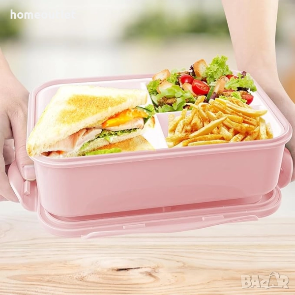 Кутията за обяд е проектирана с 3 отделения за разделяне на зеленчуци, плодове или друг вид храни, за да се избегне смесване на храната.