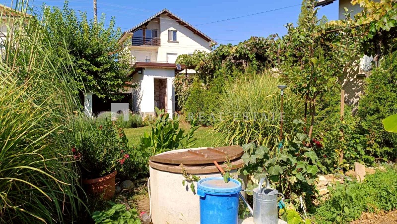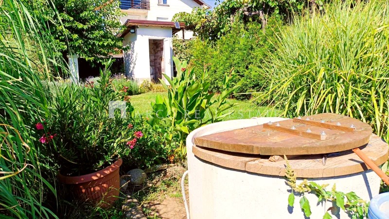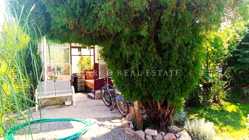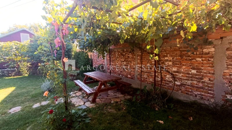 беседка под асма, овошки и голям орех, които създават уют и сянка през лятото.