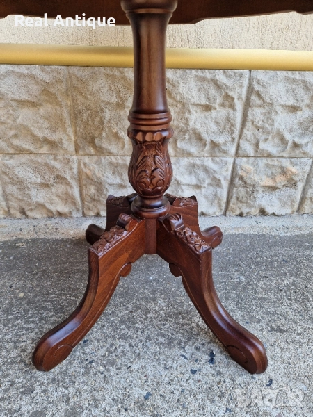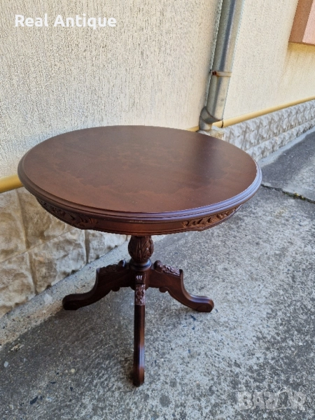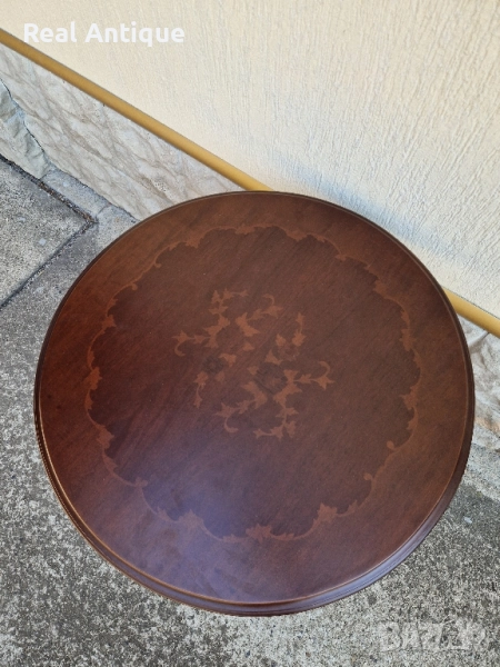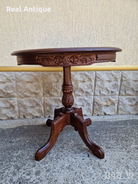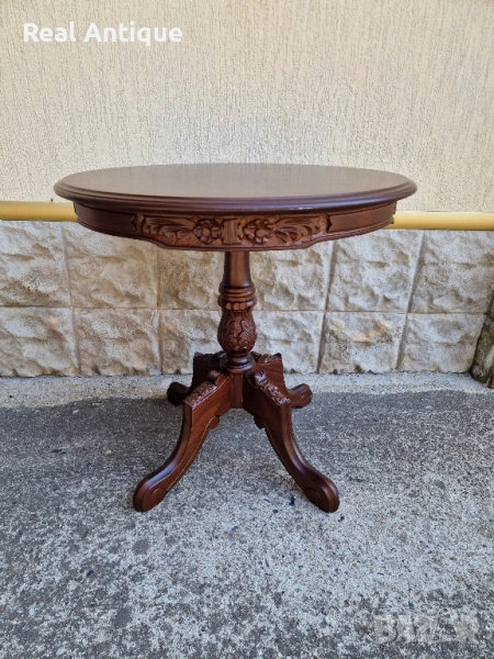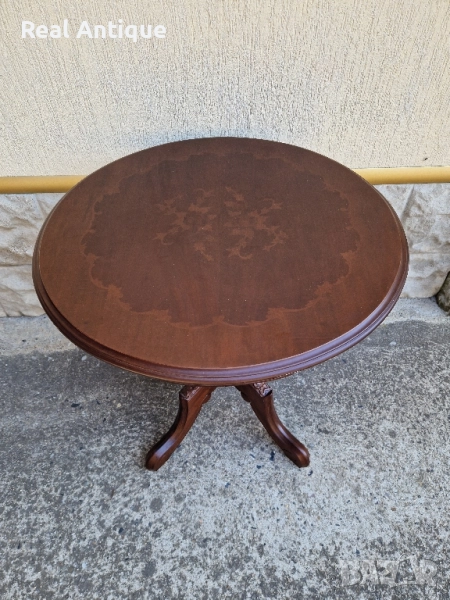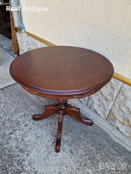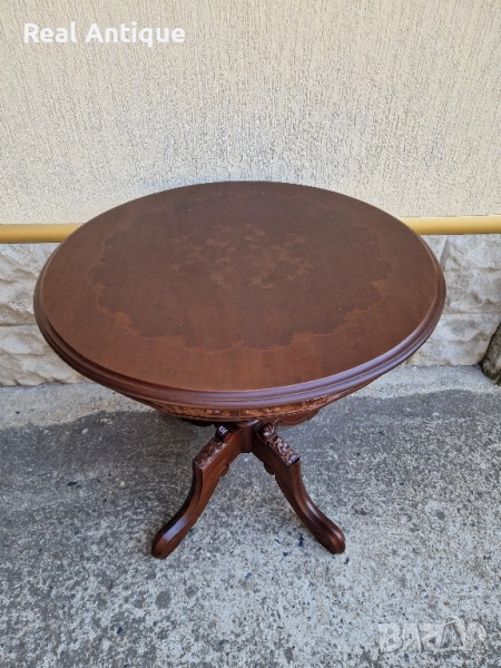 Продавам прекрасна много красива антикварна дървена маса с дърворезба и интарзия в перфектно състояние без никакви забележки. Тежка здрава масивна. Височина 66 см диаметър на плота 66 см. Чудесно допълнение към интериора на Вашия дом офис вила механа. Работя с всички куриери. Отговарям бързо.
