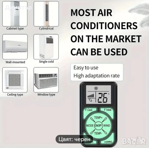 Чисто ново универсално мини дистанционно за климатик, става за повечето климатици! Не са му нужни настройки! Вижте и другите ми обяви!