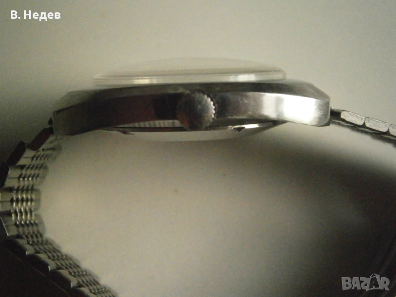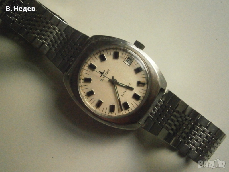 Продаваме този невероятен автоматичен и мн. рядък VTG мъжки часовник DUGENA, автоматик... Часовникът е в наистина перфектно състояние! Обслужен професионално преди месец и към момента часовникът държи много добро време. Готов за носене, включително ежедневно. Висококачествен механизъм; немски автомат, манифактура "Pfortzheimer Uhren Rohrwerke" - кал. 1561, 25 рубинови камъка, плавна секундна стрелка, дата: прозорец на 3 часа, VpH - 21600, резерв на мощност - 36-37 часа. Колкото по-високи са вибрациите на баланса, толкова по-малко се влияе точността на часовника от движението на ръката. Часовника е 100% автентичен! Бърза смяна на датата - много рядка функция - чрез последователни натискания на коронката към касата /много приятна функция/! Неоригинална стоманена верижка - почти пълен размер! Моля, обърнете внимание! Ще пасне на китка с обиколка до 19,5 см! Добавям и чисто нова кожена каишка - черна или кафява.