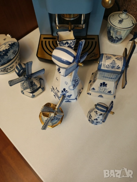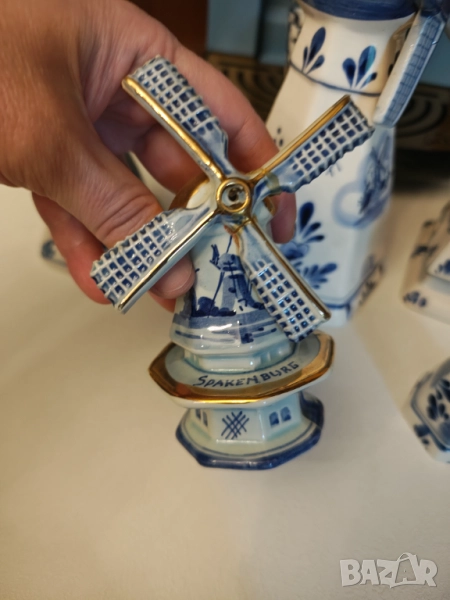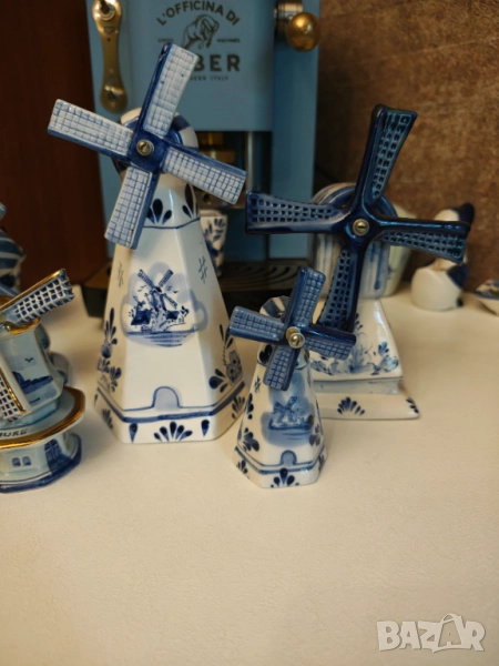 5 колекционерски мелници на делфт с различна големина 29,18 14 10,13 см Едната с позлата е лепена професионално на перката .Не се продават отделно .Цената е без коментар.