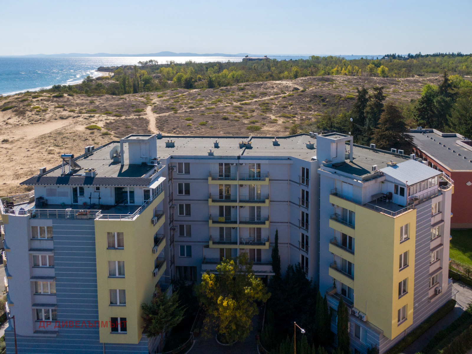 Сградата е емблематична за района и е на първа линия до плажа. Има контролиран достъп, отлично поддържана е, видеонаблюдение, басейн, детска площадка и озеленен двор.