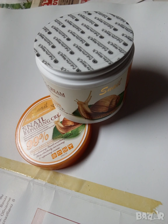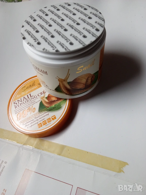 Продавам крем за лице против бръчки, с екстракт от охлюви, внос от Гърция. Голяма кутия, 115 грама! Цена 9 евро. Ако количеството е като стандартните кремове от 50 мл, тогава цената излиза САМО 3.50 евро! Продавам и крем за лице Нивеа за 65+ години, 50 мл, на цена 6€. При закупуване на неща и от другите ми обяви, естествено, че ще има МНОГО ГОЛЕМИ отстъпки! И моля, не ми пишете за намаляване на цена, продавам си нещата на тези цени. Хидратиращият комбиниран регенериращ крем за лице възстановява и хидратира кожата на лицето 24 часа през деня и нощта. Като иновативен продукт със силно хидратиращо, изглаждащо и възстановяващо блясъка на кожата действие, предотвратява дехидратацията на кожата, изглажда грубата кожна повърхност и я прави здрава и устойчива. Освен че осигурява задържане на влагата в кожата, редуцира сърбежа, зачервяването, паренето и болката, предотвратява повторното изсушаване на кожата. Обогатен е с витамини A, C и E, колаген, еластин, алантоин, гликолова киселина, подобрява еластичността и гладкостта на кожата, редуцира бръчките. Придава усещане за комфорт и свежест. Намалява видимостта на пигментациите и зачервяванията по кожата. Изравнява и освежава тена. Ефективността на крема се усеща веднага и дарява усещане за комфорт и свежест с текстура, съчетаваща плътността на крем с лекотата на гел. При закупуване на неща и от другите ми обяви, естествено, че ще има МНОГО ГОЛЕМИ ОТСТЪПКИ!