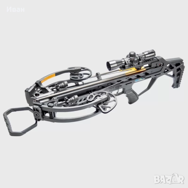 Той също така идва с оптически мерник 4x32, ремък, въже за зареждане, колчан с 4 бр 20-инчови карбонови стрели.