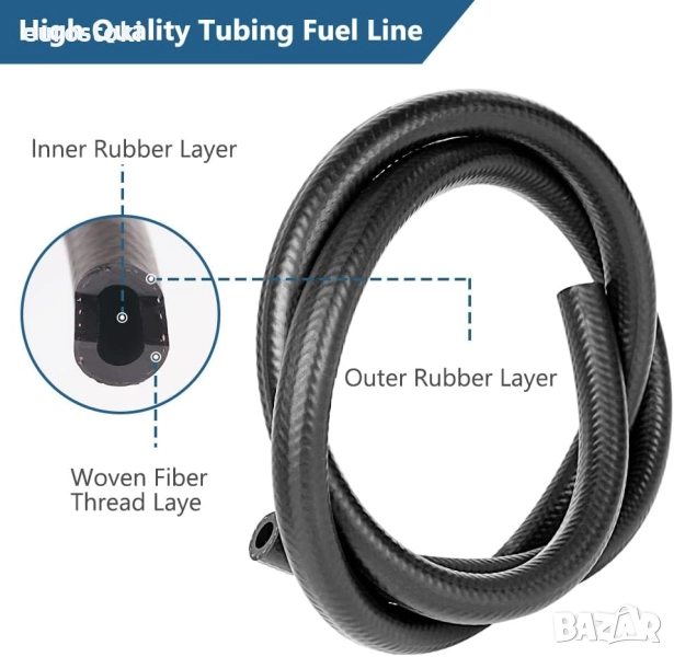 Комплектът маркучи за горивопровод е изработен от нитрилен каучук и плетена тел от найлонови влакна, която притежава характеристиките на маслоустойчивост, устойчивост на високи температури, добри характеристики на огъване и устойчивост на стареене. Здравата конструкция позволява дълготрайна експлоатация.
