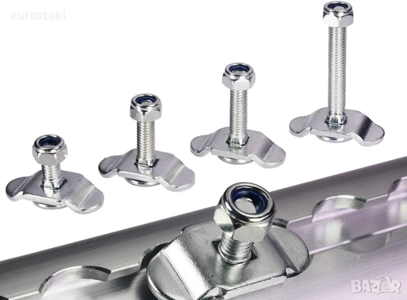 40/60 мм анкерни болтове с винтове за такелажни релси на въздушни линии, закрепващи релси, крайни фитинги M8 х40/60 мм. За в кемпери, ремаркета, фургони, микробуси или малки