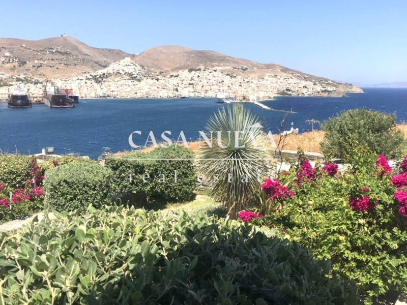 CASA NUEVA REAL ESTATE има удоволствието да представи за продажба изключителна самостоятелна къща, разположена на един от най-живописните острови в Егейско море столицата на Цикладите - о.Сирос. Имотът е с разгъната застроена площ от 440 кв.м., построен върху просторен парцел от 4000 кв.м., и предлага несравнима гледка към морето и града.