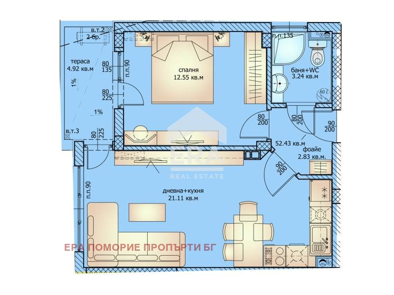 ЕРА Ви предлага за покупка двустаен непреходен апартамент на атрактивна цена. Жилищната тухлена сграда е новото бижу в град Ахелой построена от строителна фирма с дългогодишен опит и репутация в България.