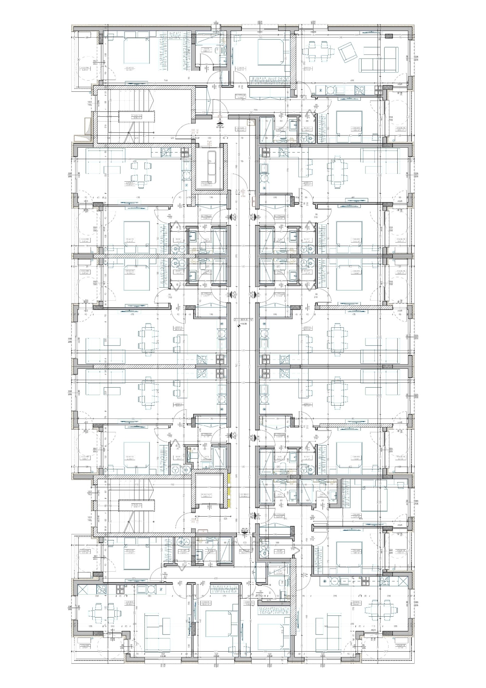 Апартаментът се намира на ет. 3 и е с изложение изток - запад. На чистата площ от 122 кв.м са разпределени: Дневен тракт с излаз на тераса, три спални (едната със собсвен санитарен възел) с излаз на втора тераса, общ санитарен възел, килер, входно антре. Стаите са с правилни форми и отлична функционалност.