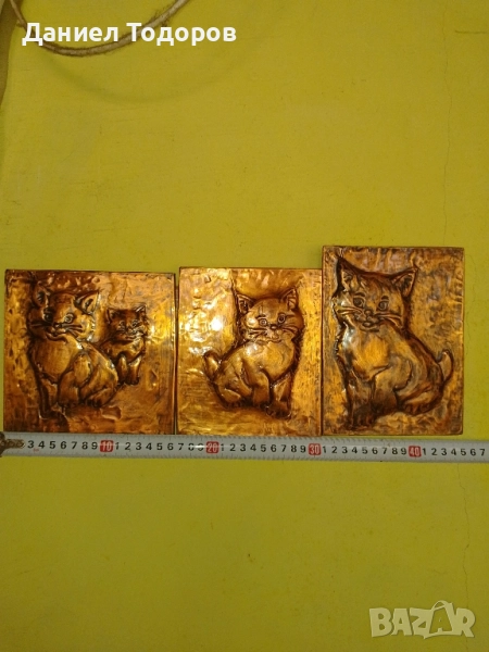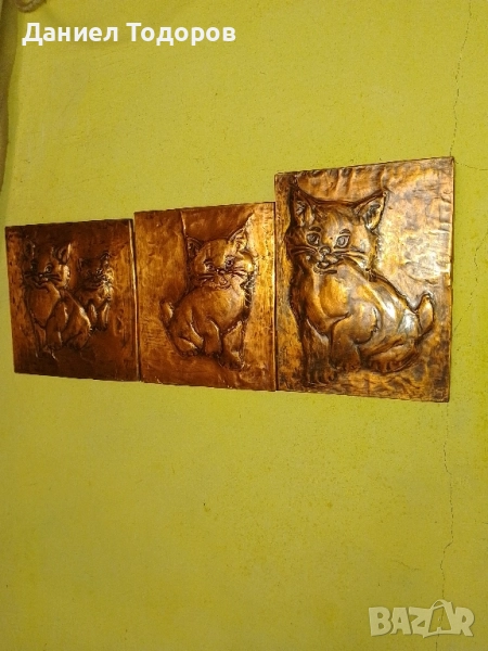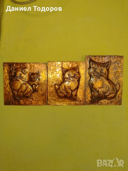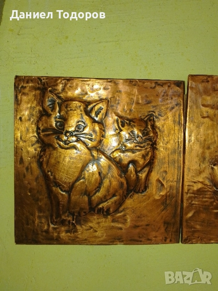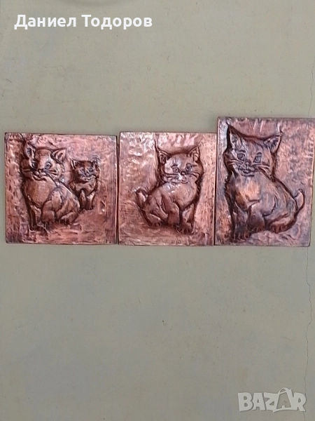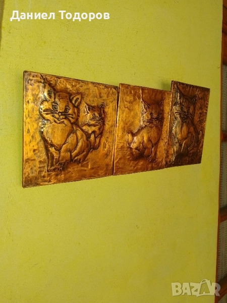 Стара Медна Декоративна Картина , Медно Пано - Котенца → Обява 51674292