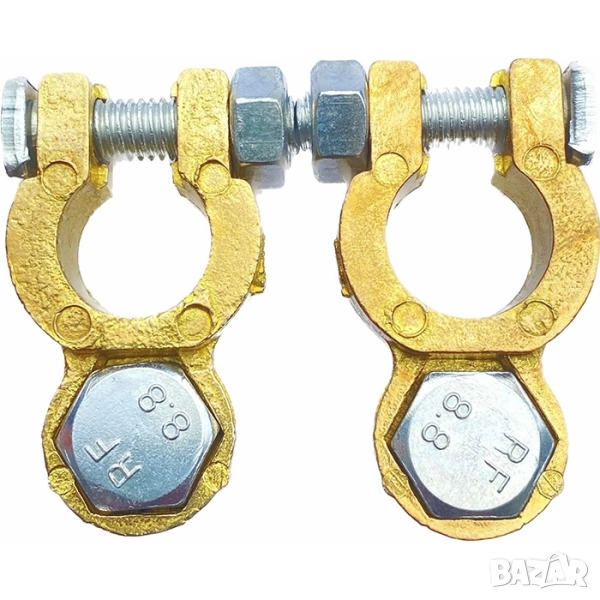 Комплект метални клеми за автомобилен акумулатор с означение + и – Подходящи за 6 и 12 волтови акумулатори.