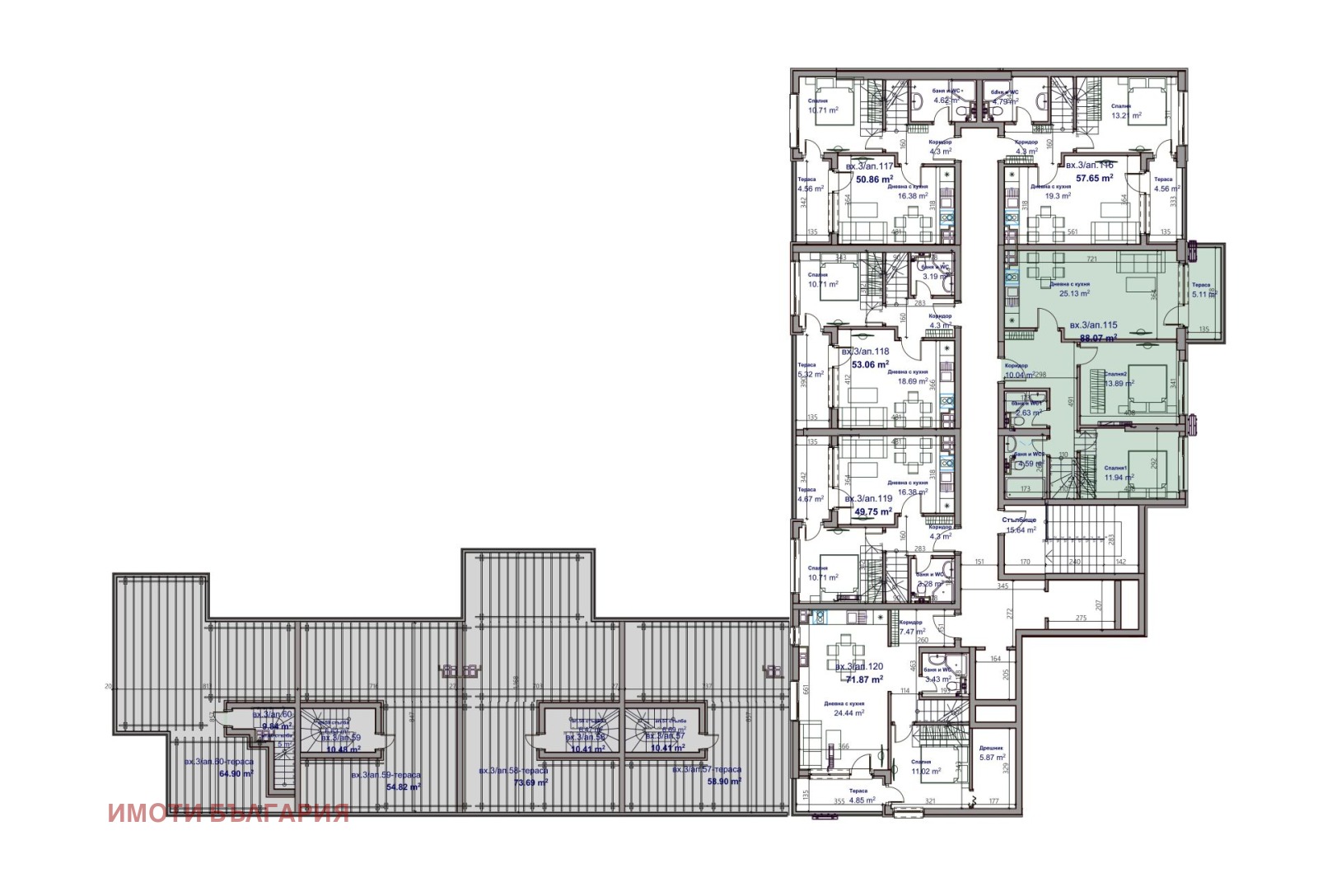 Ап. 115 във вход 3, на ет. 17 и 18, с изложение изток