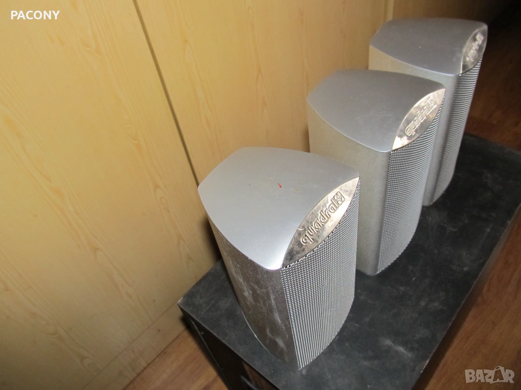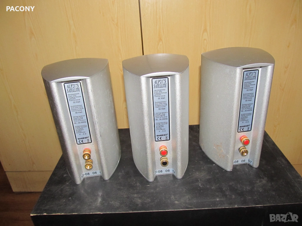 Колонки quadral - тежки и мощни за размерите си. 3 броя са. Цената за трите е 30 евро. Щом са тук - значи са налични. Мощност 50вт sinus. От 80 до 22 000hz. 4...8 om