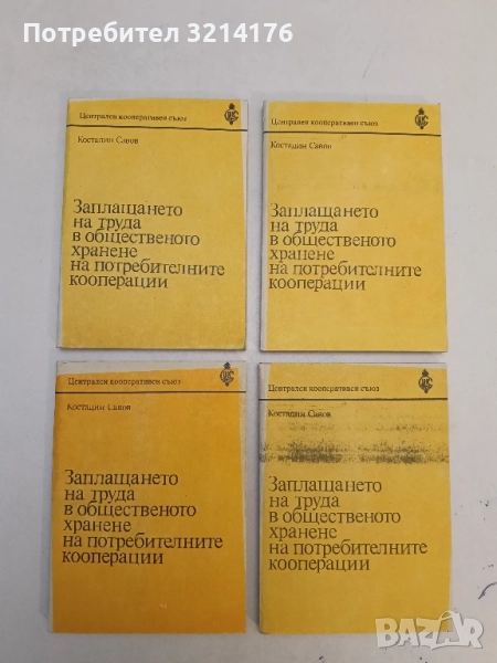Заплащането на труда в общественото хранене на потребителните кооперации – Косатдин Савов 93лв. 4бр. (1987)