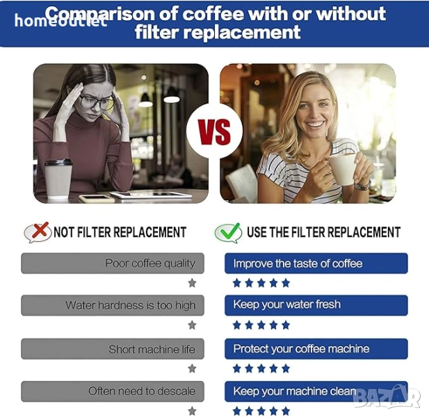 Съдържа естествена йонообменна смола и активен въглен, които стабилизират калциевия карбонат и премахват примесите, които влошават вкуса и аромата на кафето.