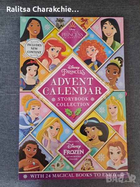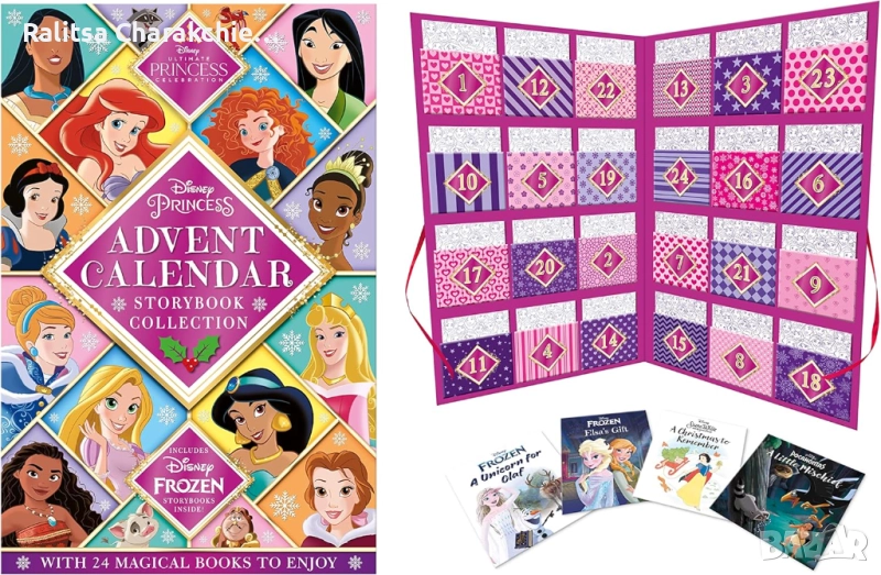 Изживейте магията на Коледа с вълшебното издание на коледния календар „Принцеса“. То включва 24 илюстровани книжки с принцесите на Disney.