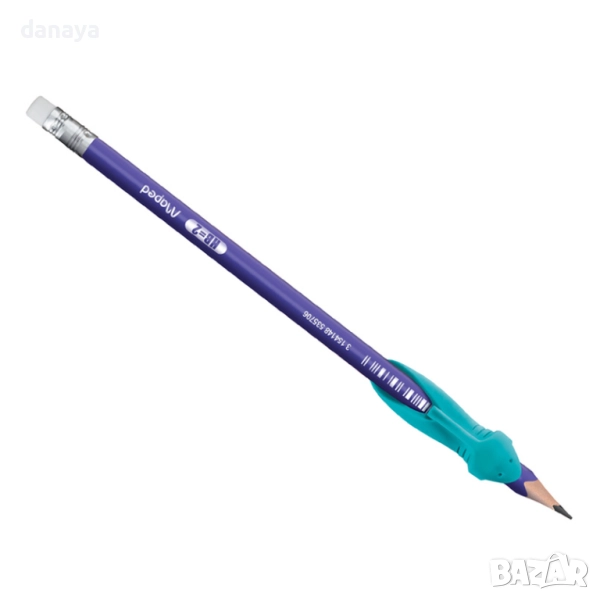 Моливът е със средна твърдост HB, осигурява плавно и чисто писане, а гумичката в края позволява лесно изтриване. Ръкохватката е изработена от мек, неплъзгащ се gumen материал, подходящ за многократна употреба и за всички стандартни моливи и химикалки.