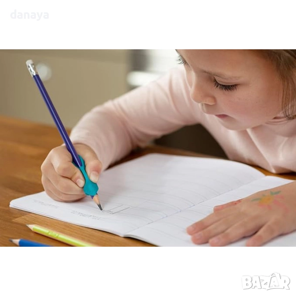 Практичен комплект, включващ висококачествен графитен молив Hb и специална гумена ръкохватка с форма на акула. Ергономичният грип подпомага правилното поставяне на пръстите, улеснява писането и предотвратява умората на ръката. Идеален е за деца, които се учат да пишат, за ученици в начален етап, както и за възрастни, които искат комфорт и стабилност при писане или рисуване.