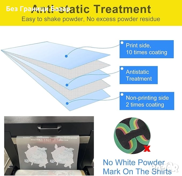 Нов DTF филм за печат върху текстил PET A4 55 листа, устойчиви щампи