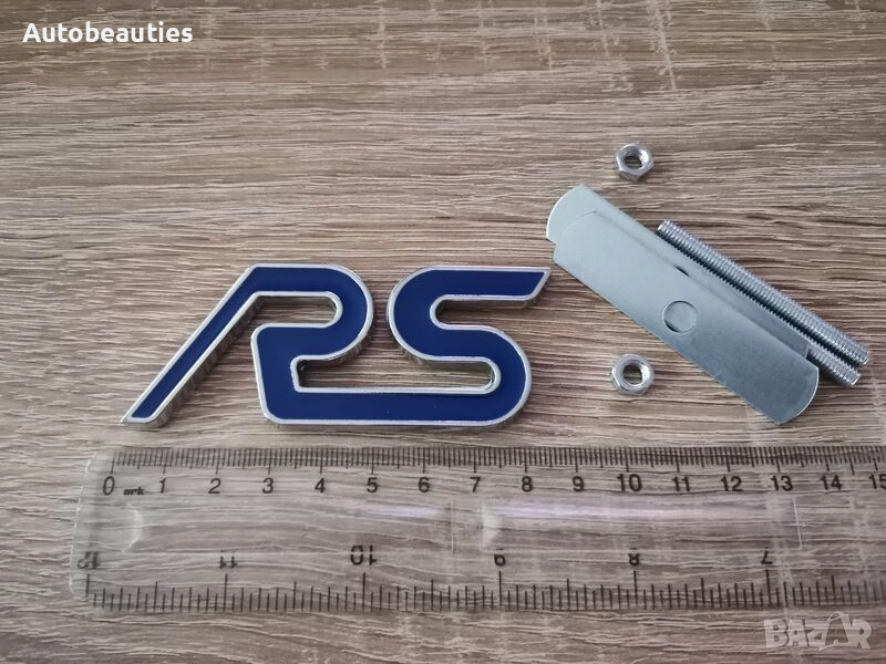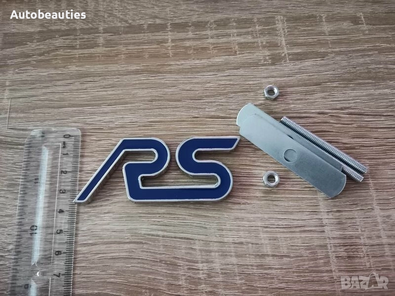 Емблема за решетка Ford RS в син цвят. Размерите са дадени на снимките.